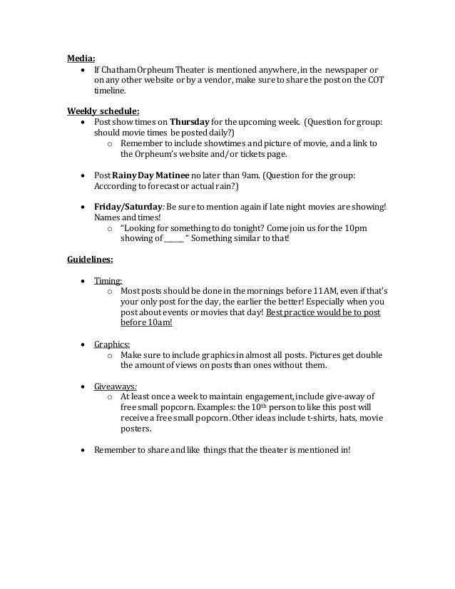 Chatham Orpheum Theater Social Media Schedule