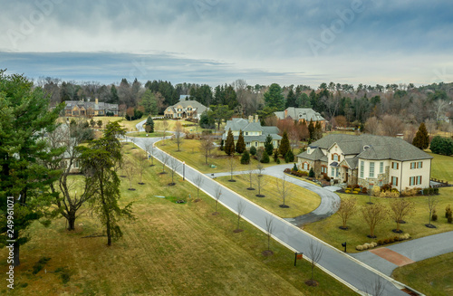 Aerial Panorama Of American Luxury Real Estate Neighborhood